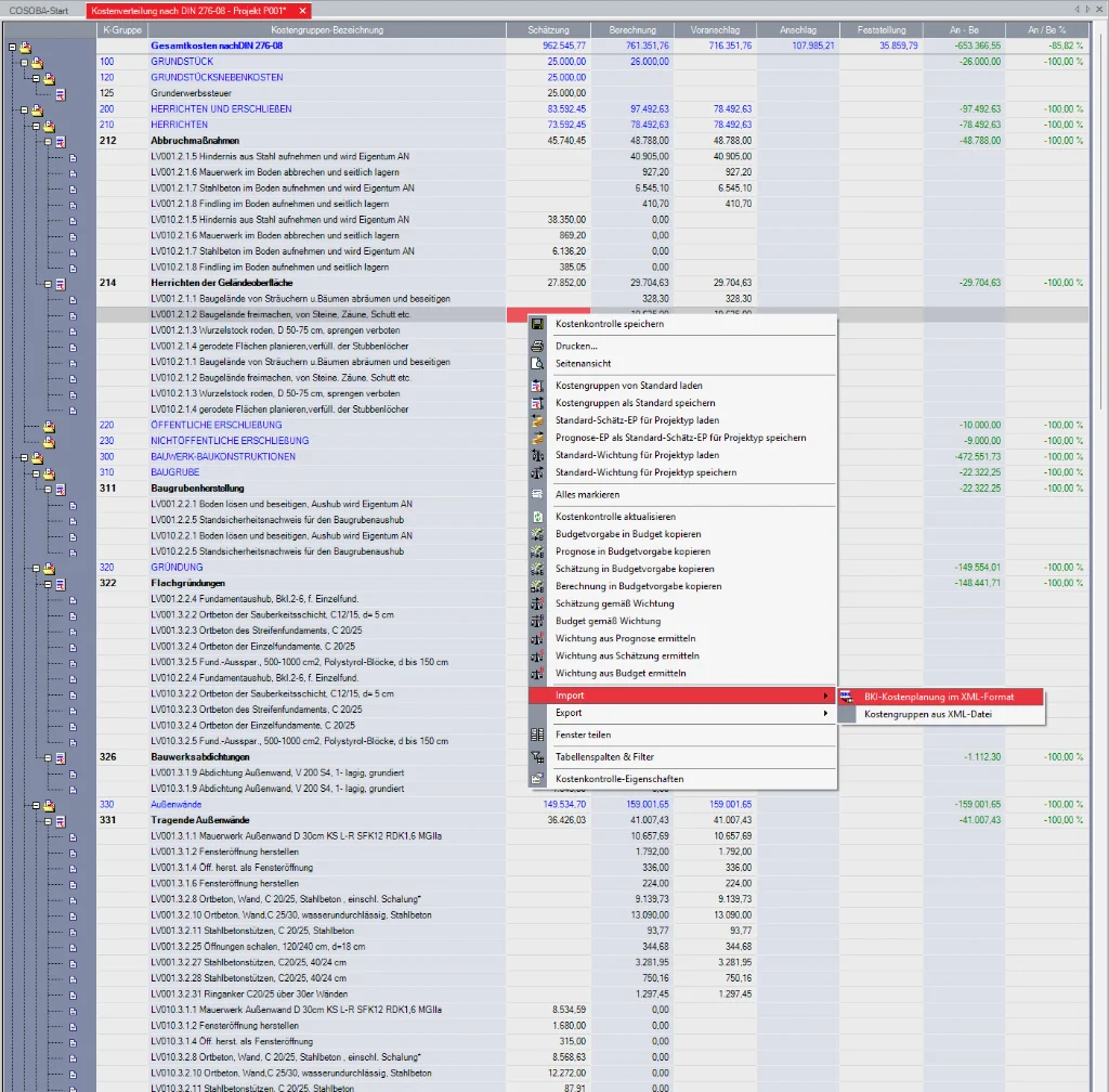 ✔ Import der Kosten aus dem BKI-Kostenplaner in die DIN276