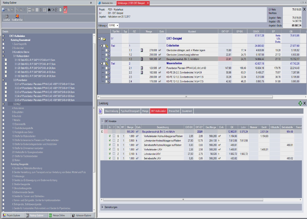 Die EKT-Kalkulation (Einzelkosten der Teilleistungen) in AVA.relax ist für das Bauwesen das optimale Werkzeug zum Kalkulieren von Einzelkosten der Teilleistungen zur Leistungsposition im Baubetrieb.